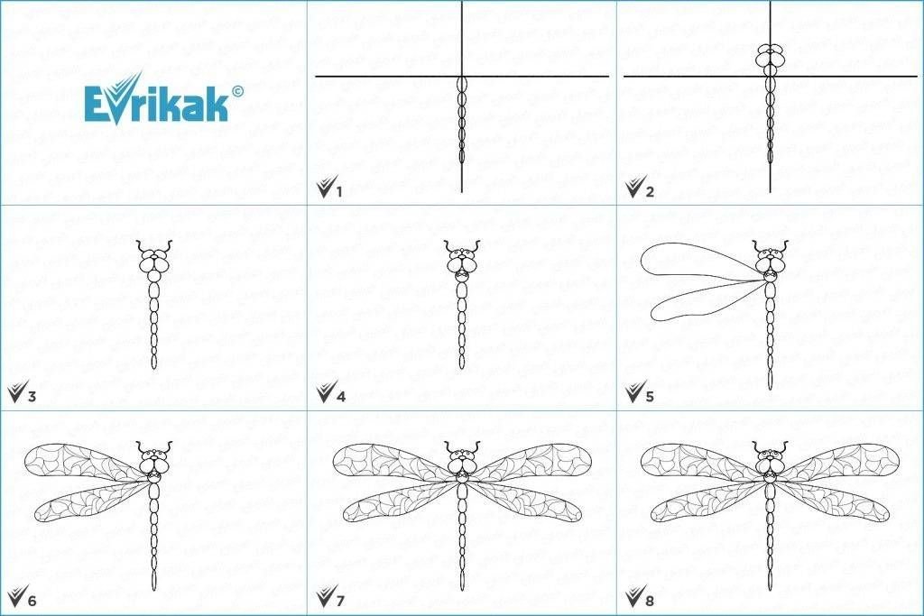Стрекоза поэтапное рисование для детей