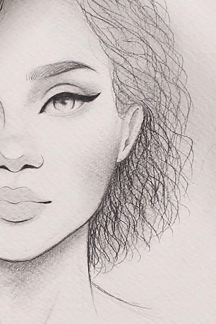 Лицо девушки рисунок карандашом
