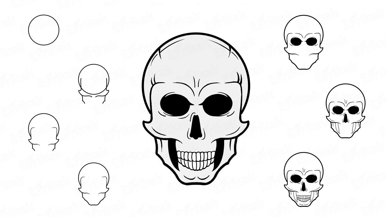Поэтапное рисование черепа