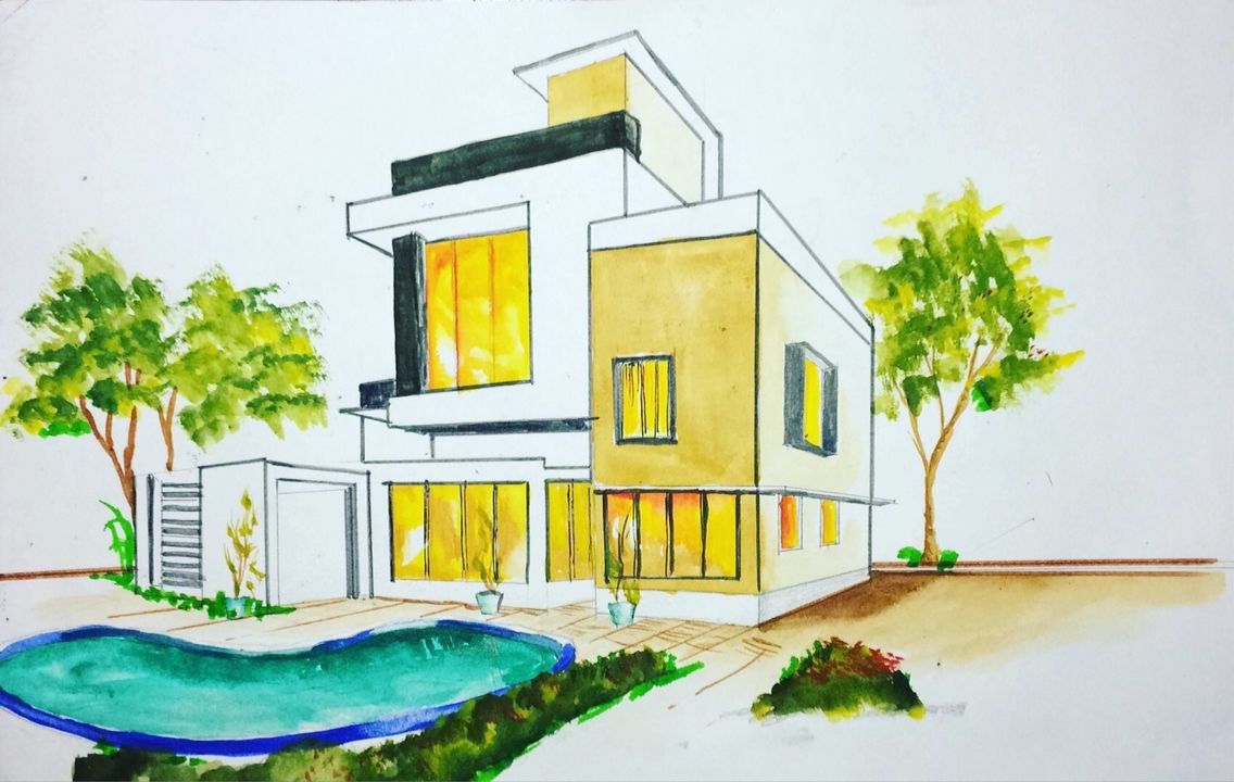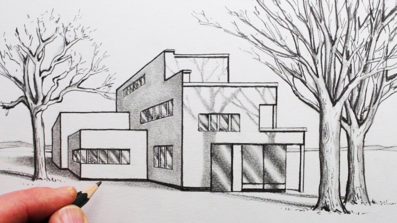 Современный дом карандашом