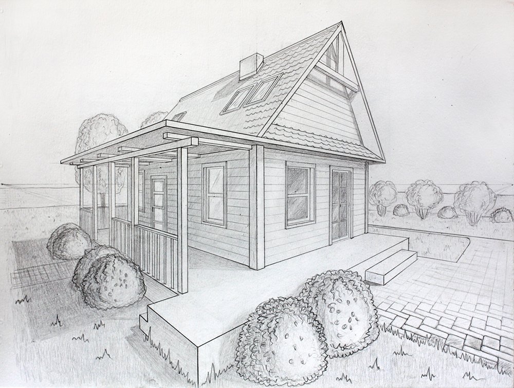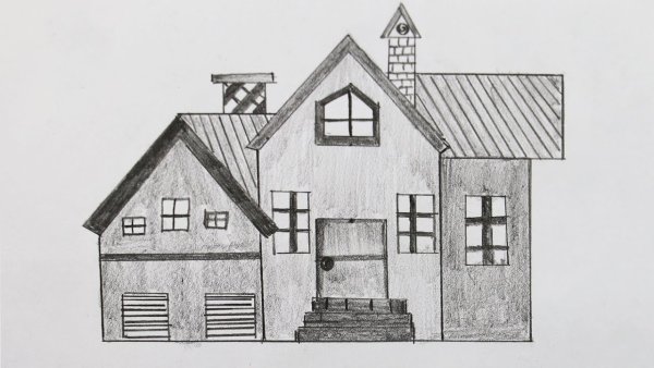 Домик рисунок карандашом