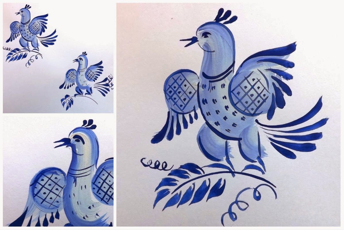 Гжельская роспись птица