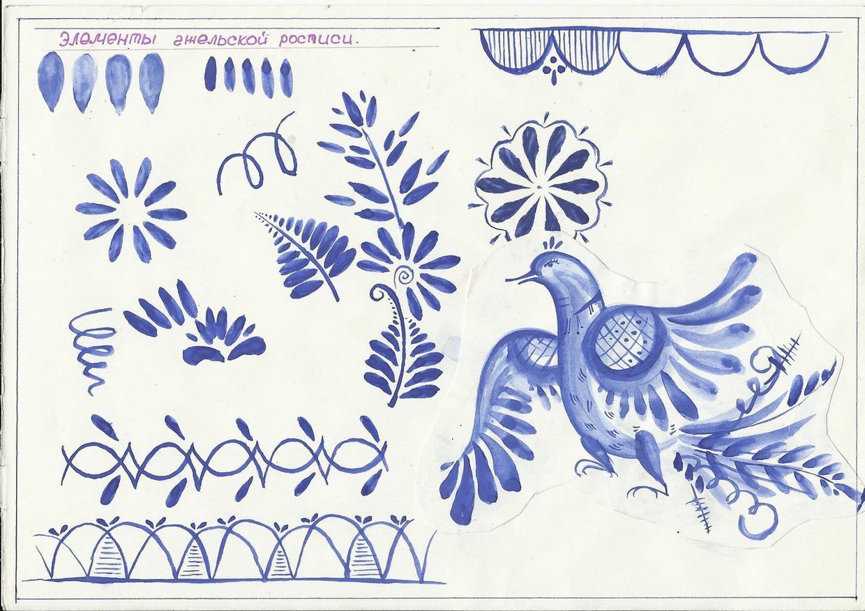 Гжельская роспись элементы росписи 5 класс
