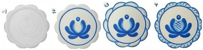 Этапы росписи тарелки Гжель