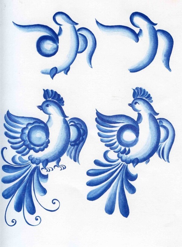 Элементы гжельской росписи птица