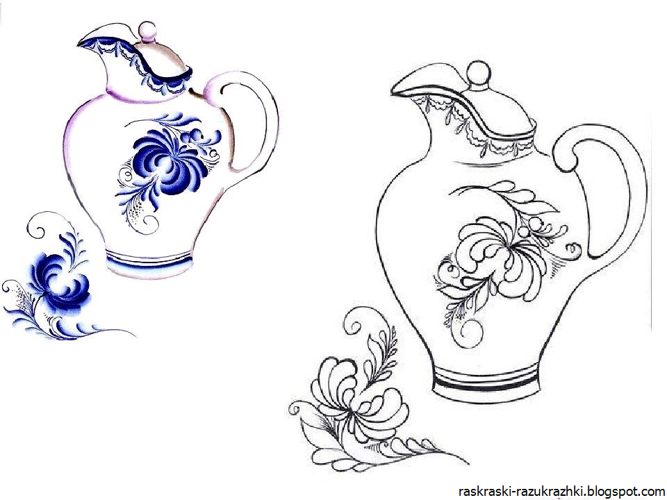 Роспись Гжель посуда раскраска