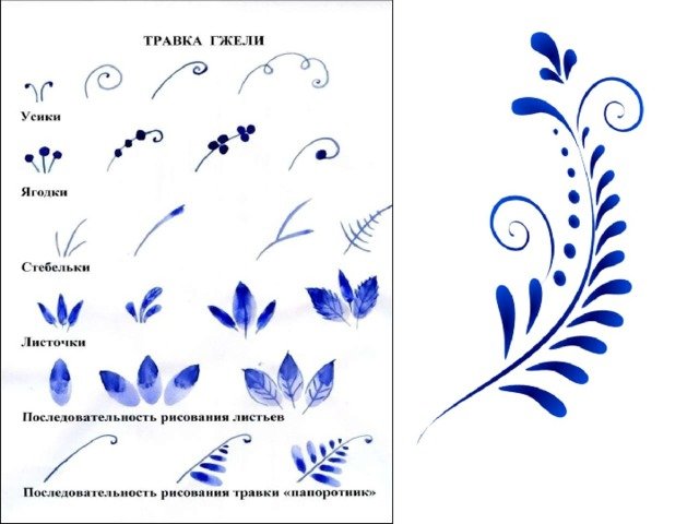 Таблица элементов гжельской росписи
