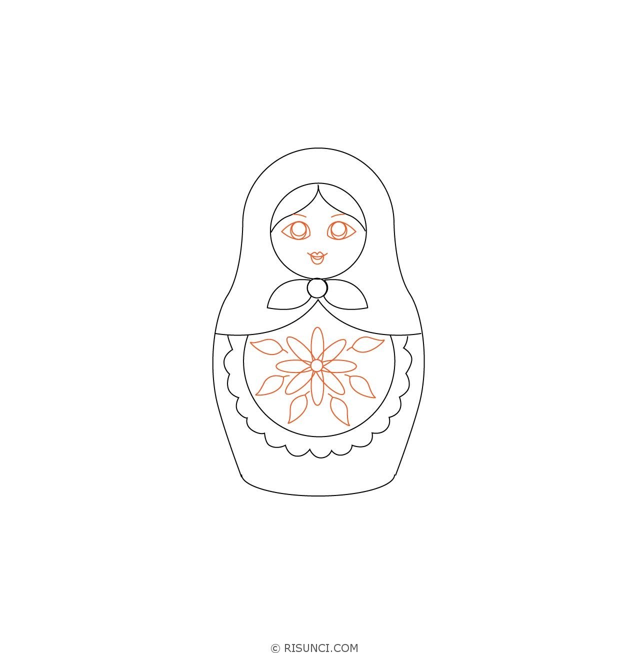 Поэтапное рисование матрешки