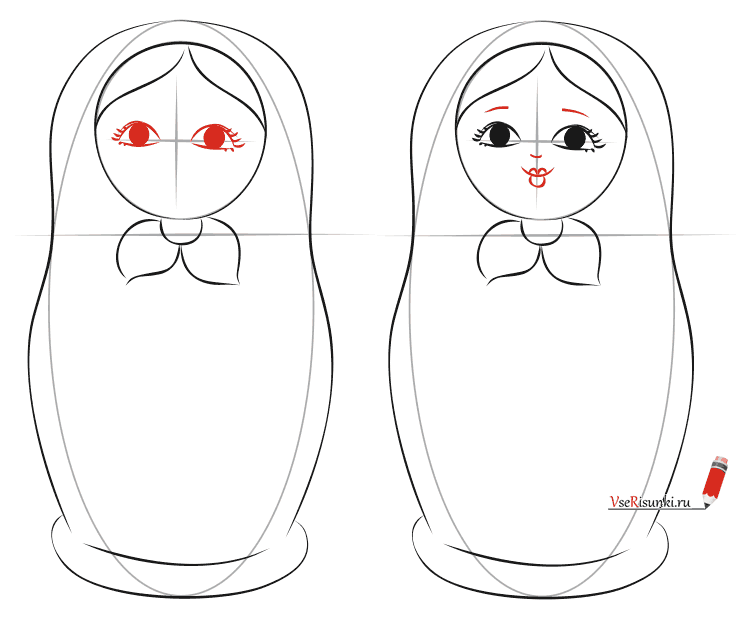 Матрешка пошаговое рисование