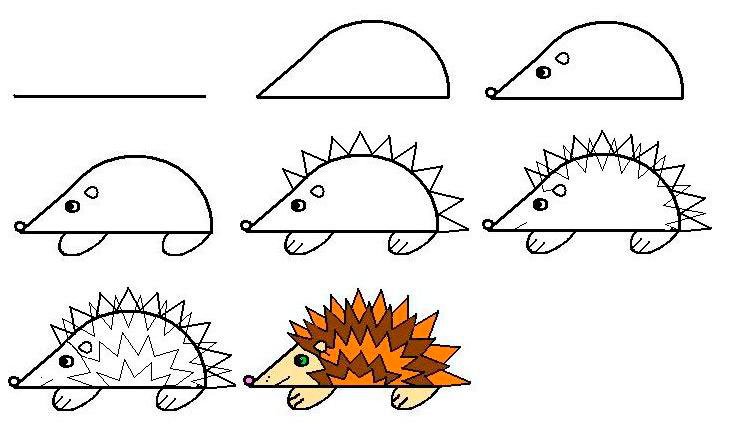 ![Поэтапное рисование ежика 1 класс]()