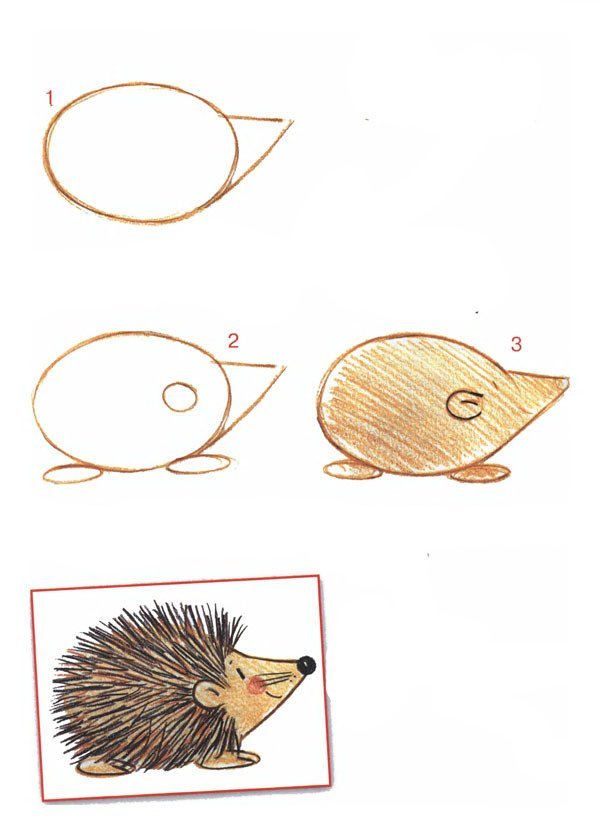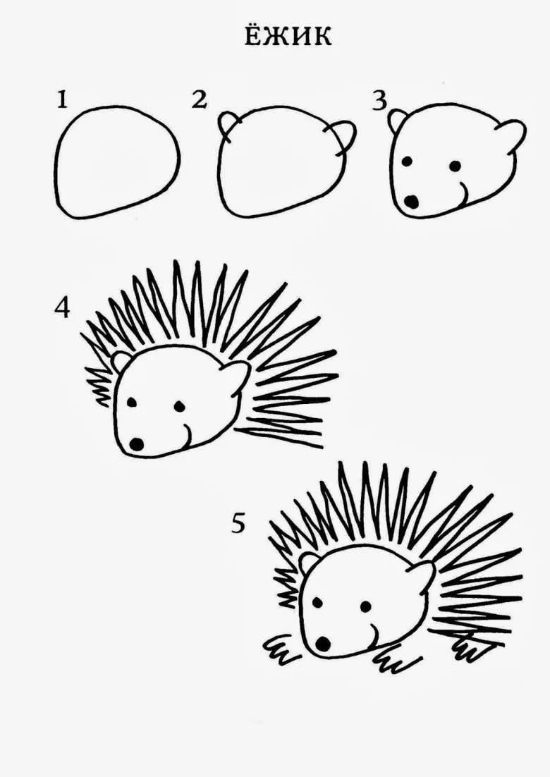 ![Нарисовать ежа поэтапно карандашом для детей]()