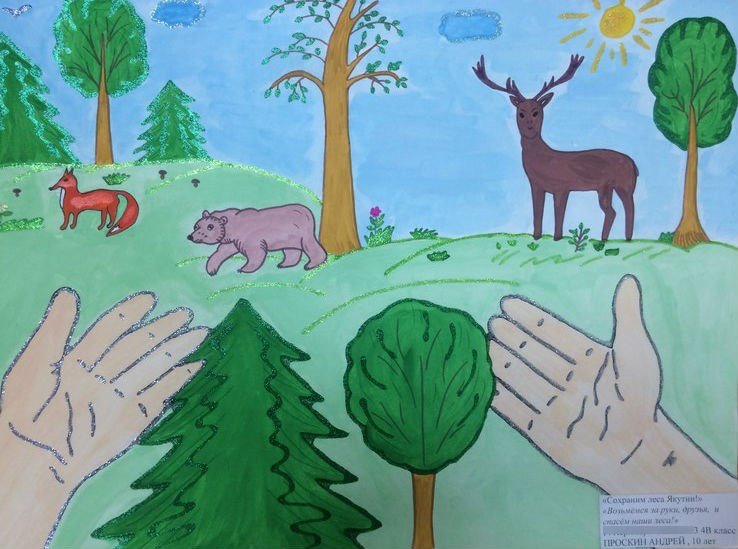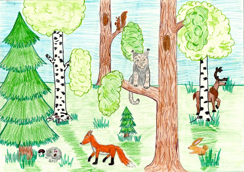 Детские рисунки на тему лес