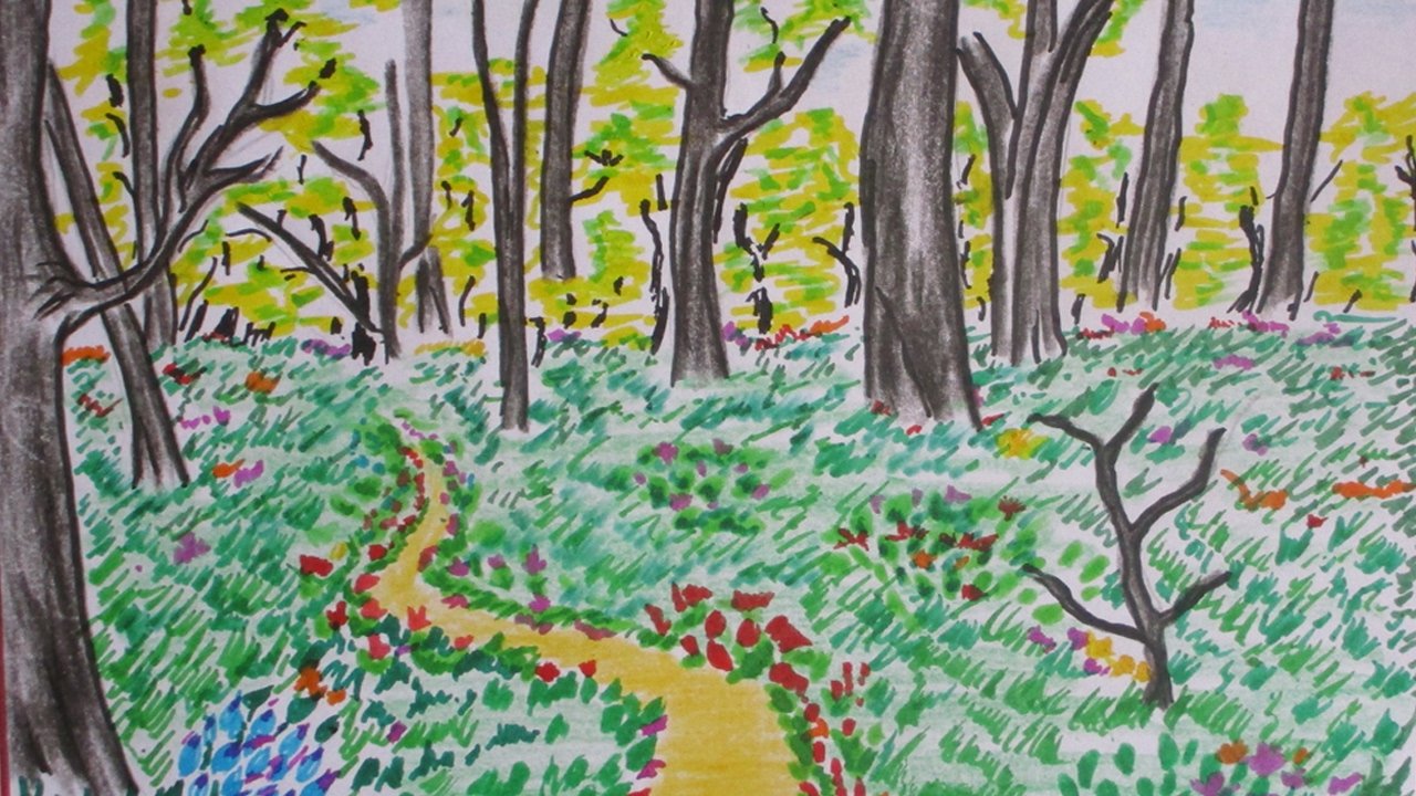![Лес цветными карандашами]()