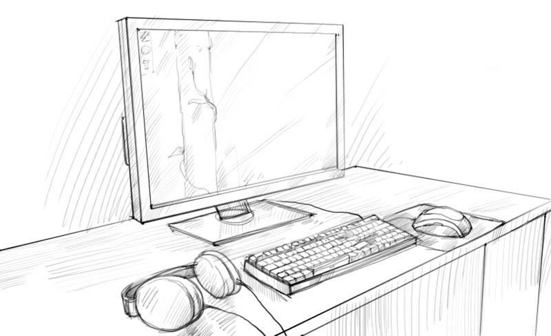 ![Компьютер эскиз]()