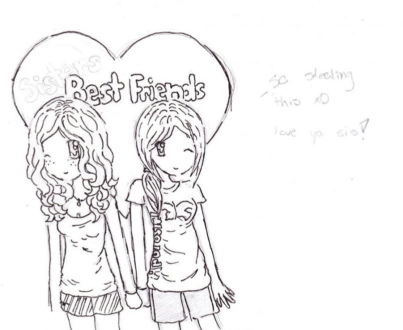 Две подружки рисунок для срисовки