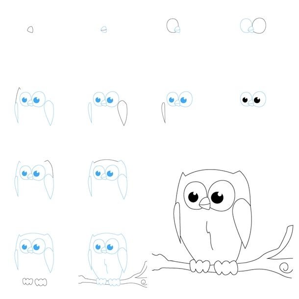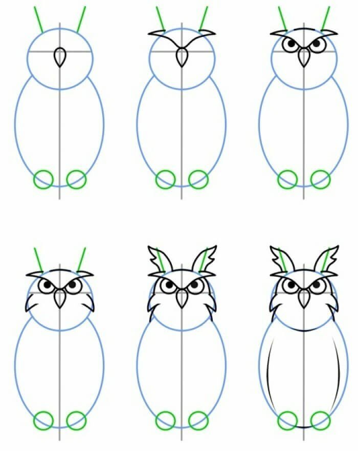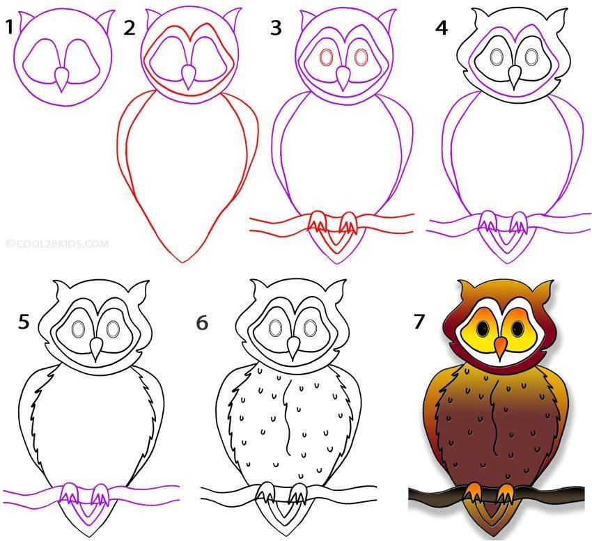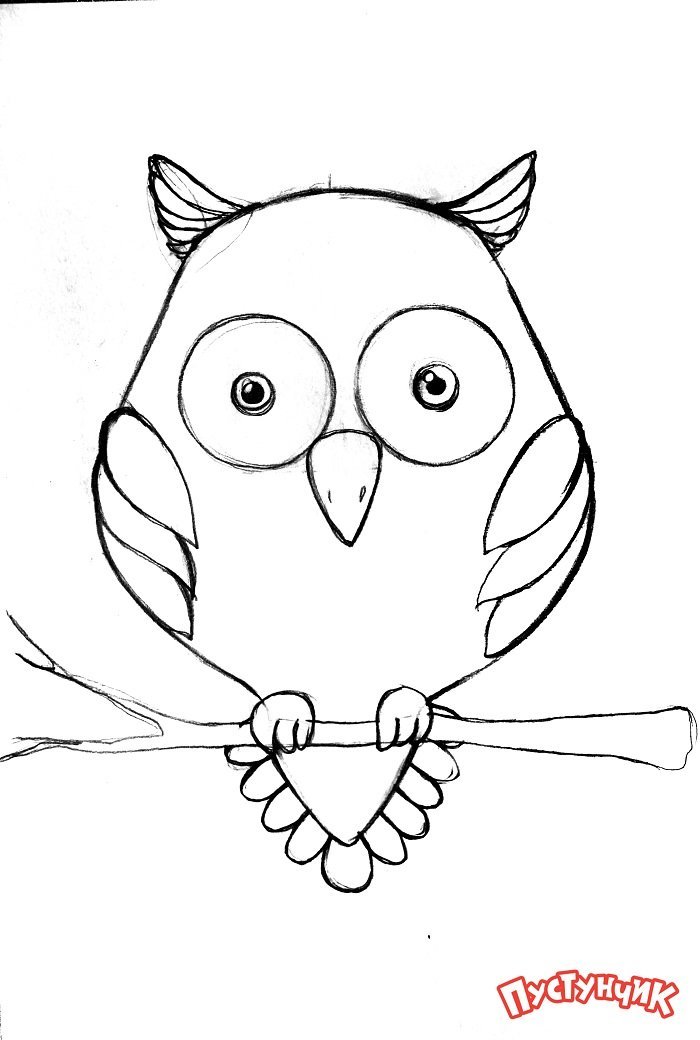 ![Сова рисунок карандашом поэтапно для начинающих]()