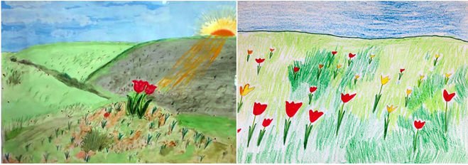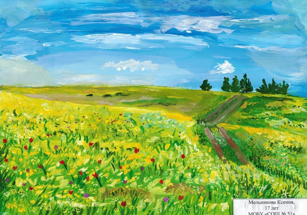 ![Детские рисунки степи]()