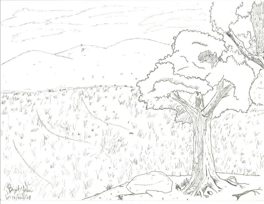 ![Пейзаж карандашом]()