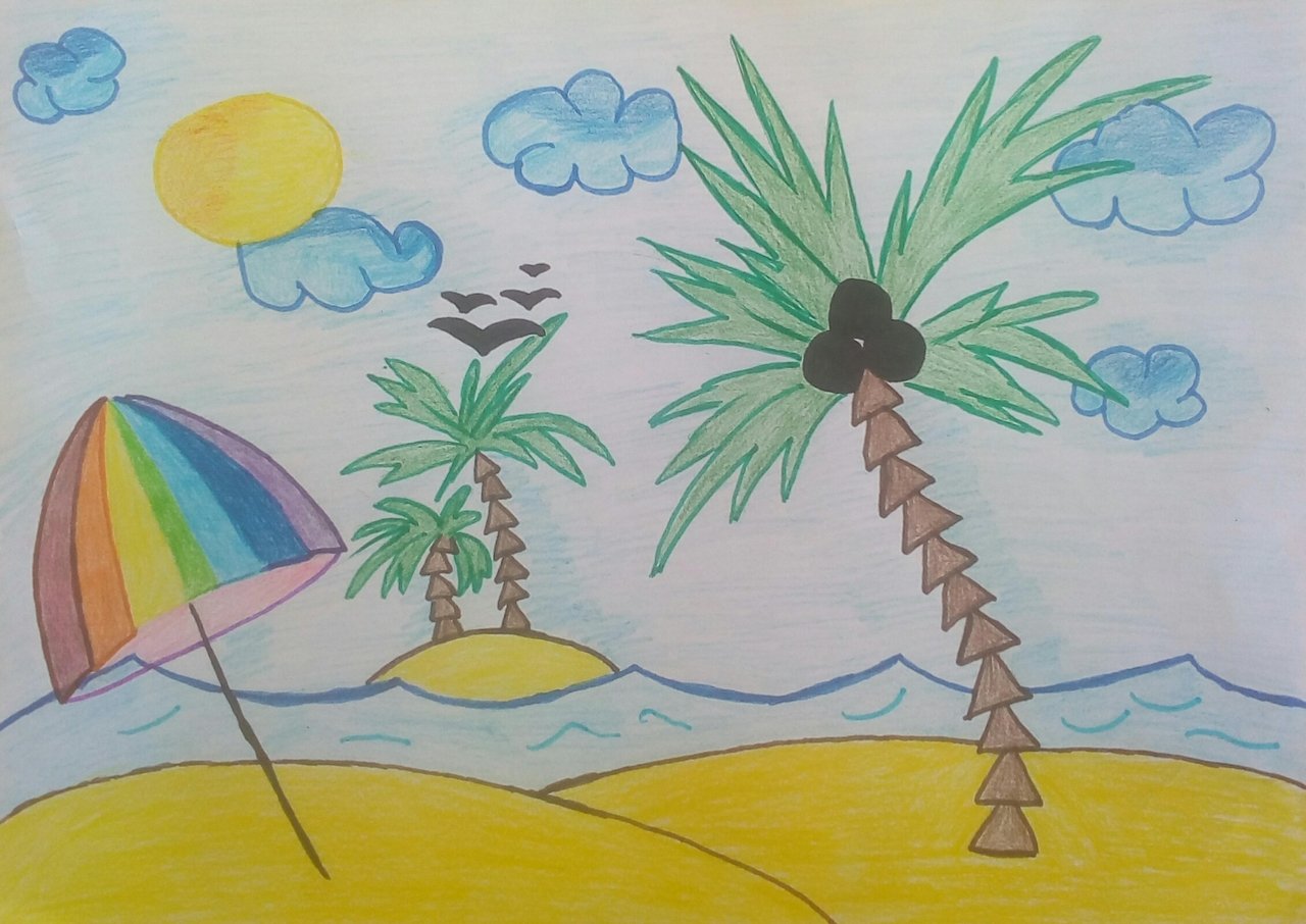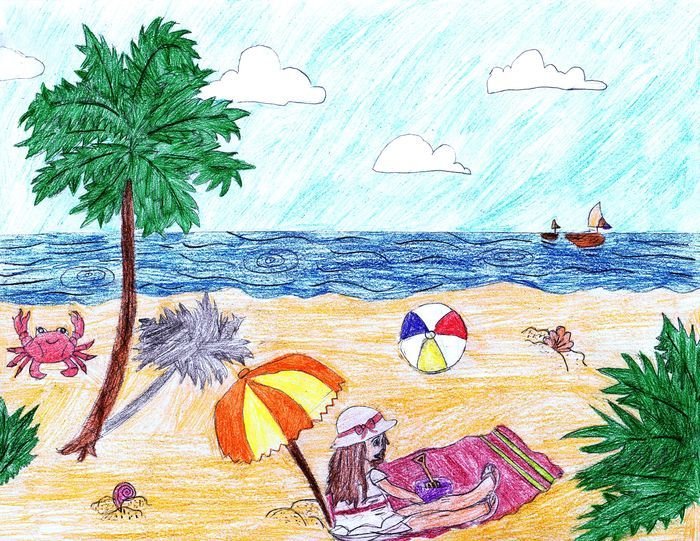 ![Рисование для детей пляж]()