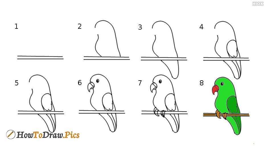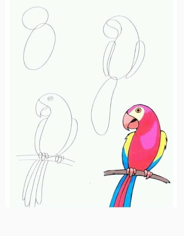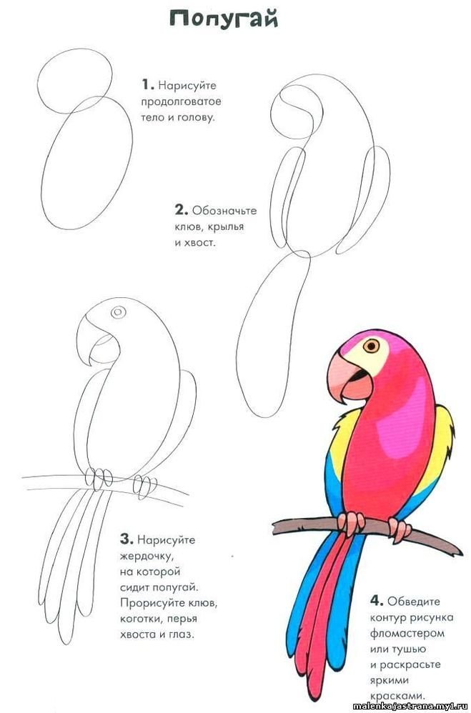 ![Рисунки по этапам попугай]()