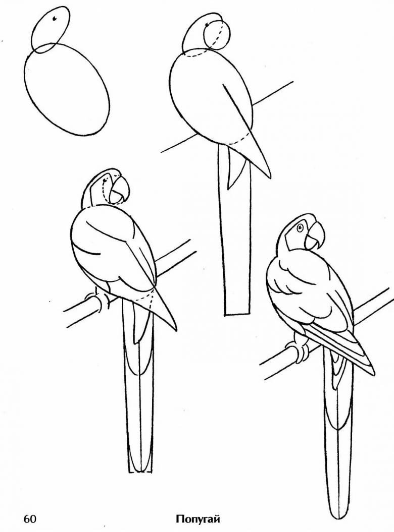 Рисунки по этапам попугай