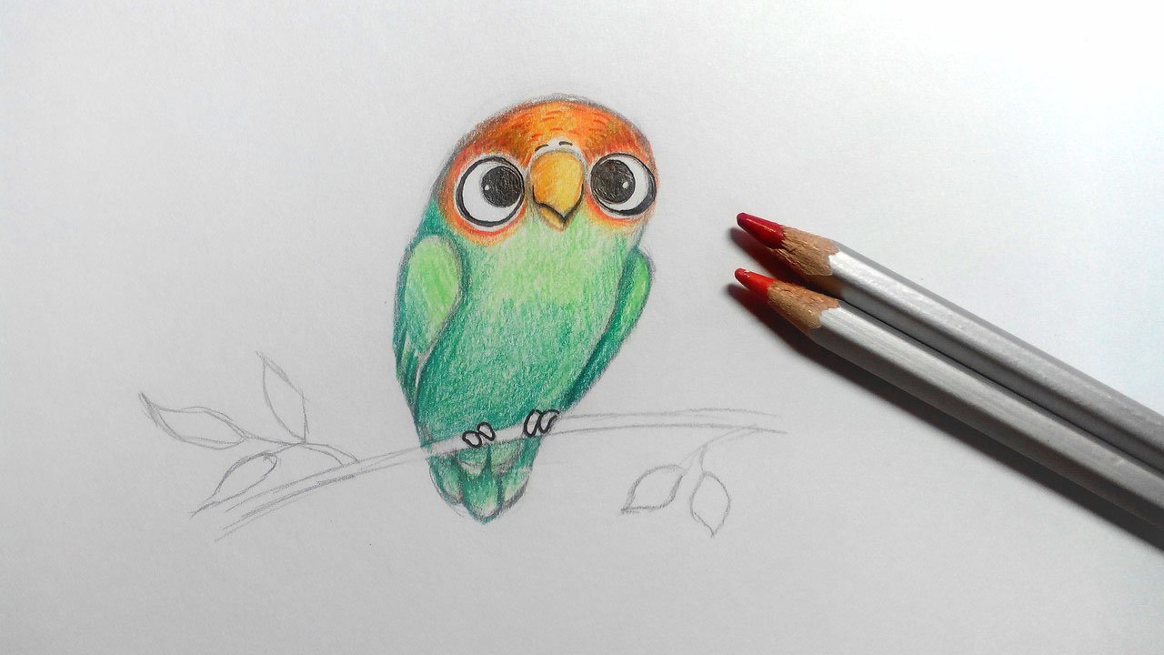 ![Уроки рисования попугая]()