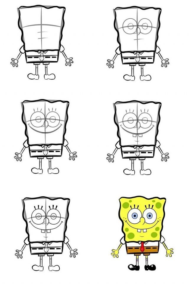 Как рисовать Спанч Боба поэтапно