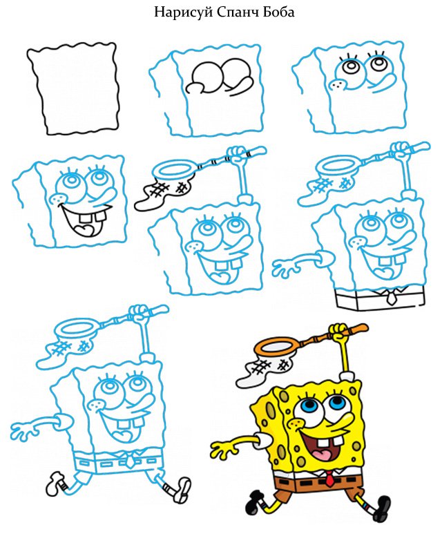 ![Как нарисовать губку Боба поэтапно]()