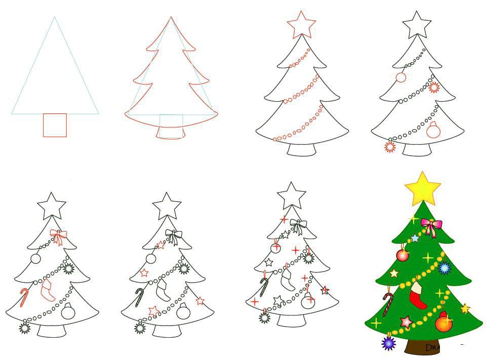 Поэтапное рисование новогодней елки