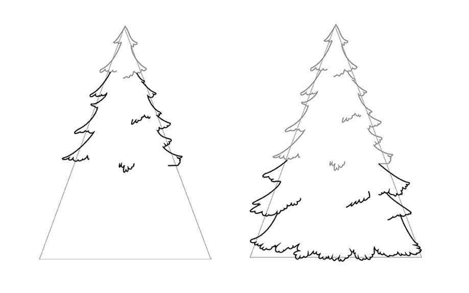 ![Пошаговое рисование елки]()