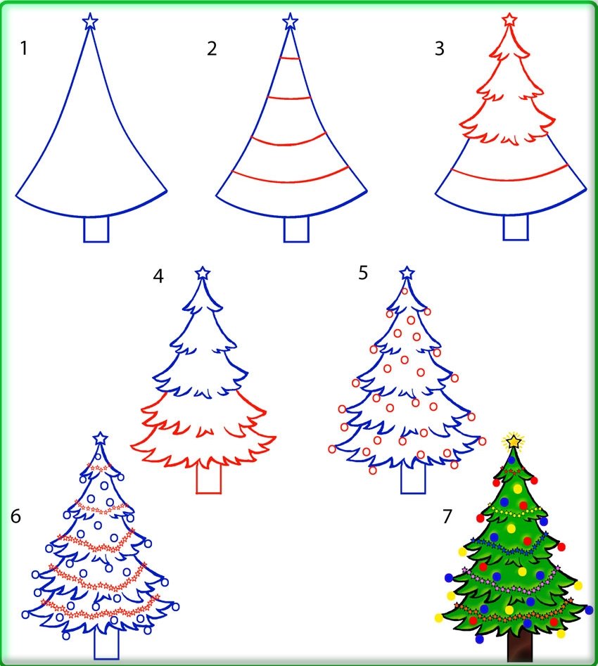 ![Способы рисования елки]()