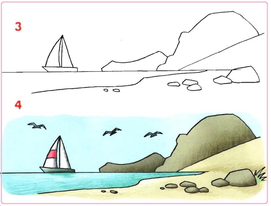 Морские пейзажи карандашом для детей