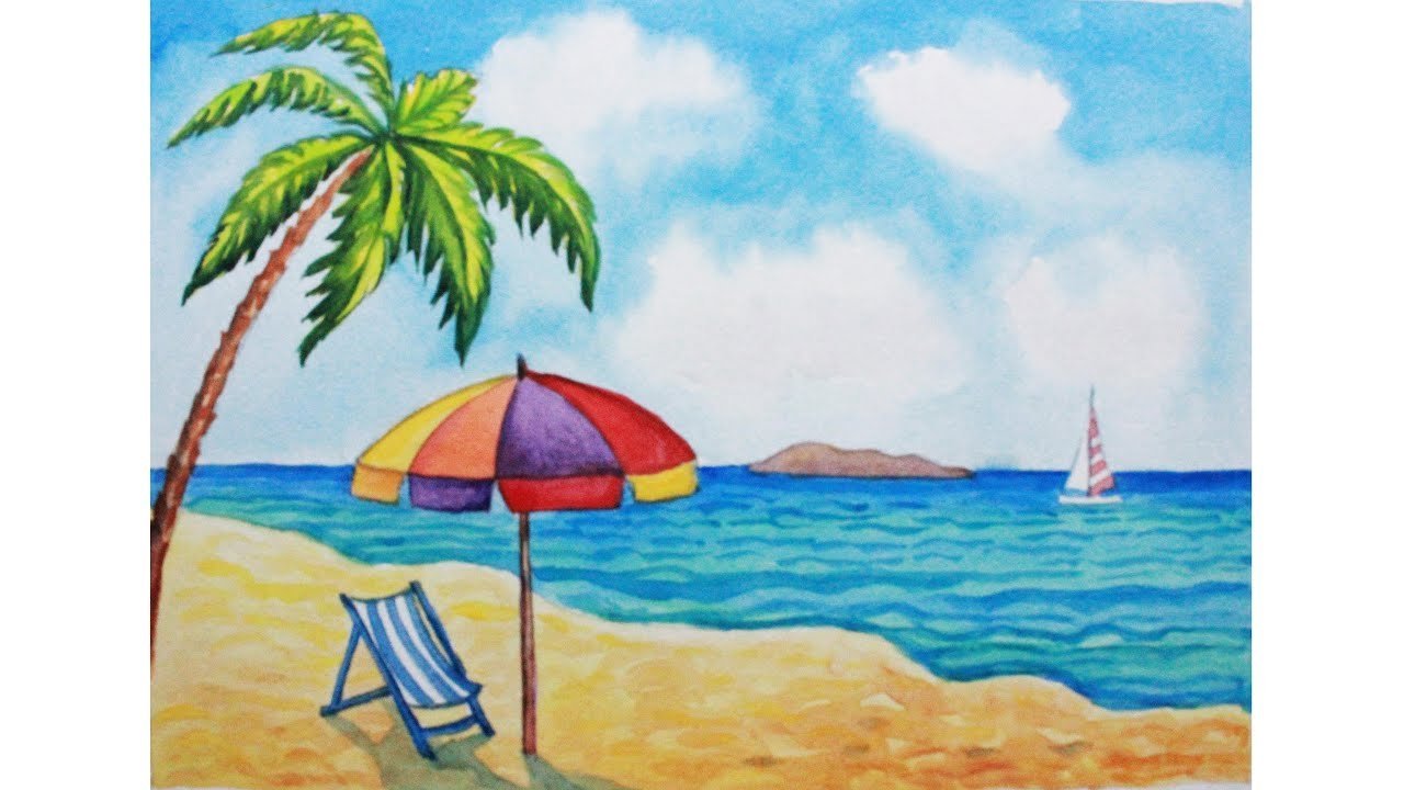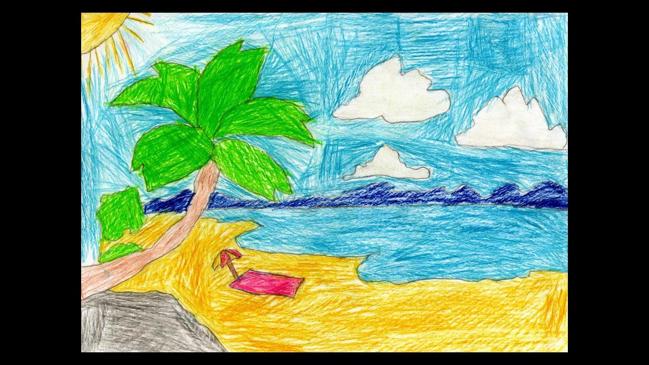 ![Рисование для детей пляж]()