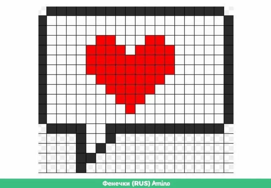 ![Сердечко по клеточкам в тетради]()