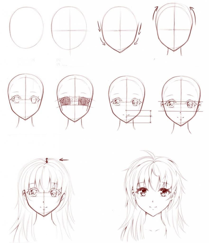 Как нарисовать аниме голову поэтапно
