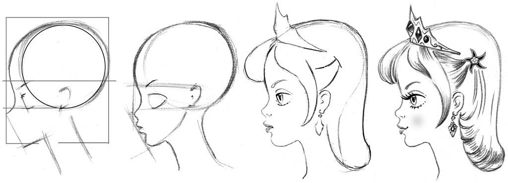 Поэтапное рисование лица в профиль
