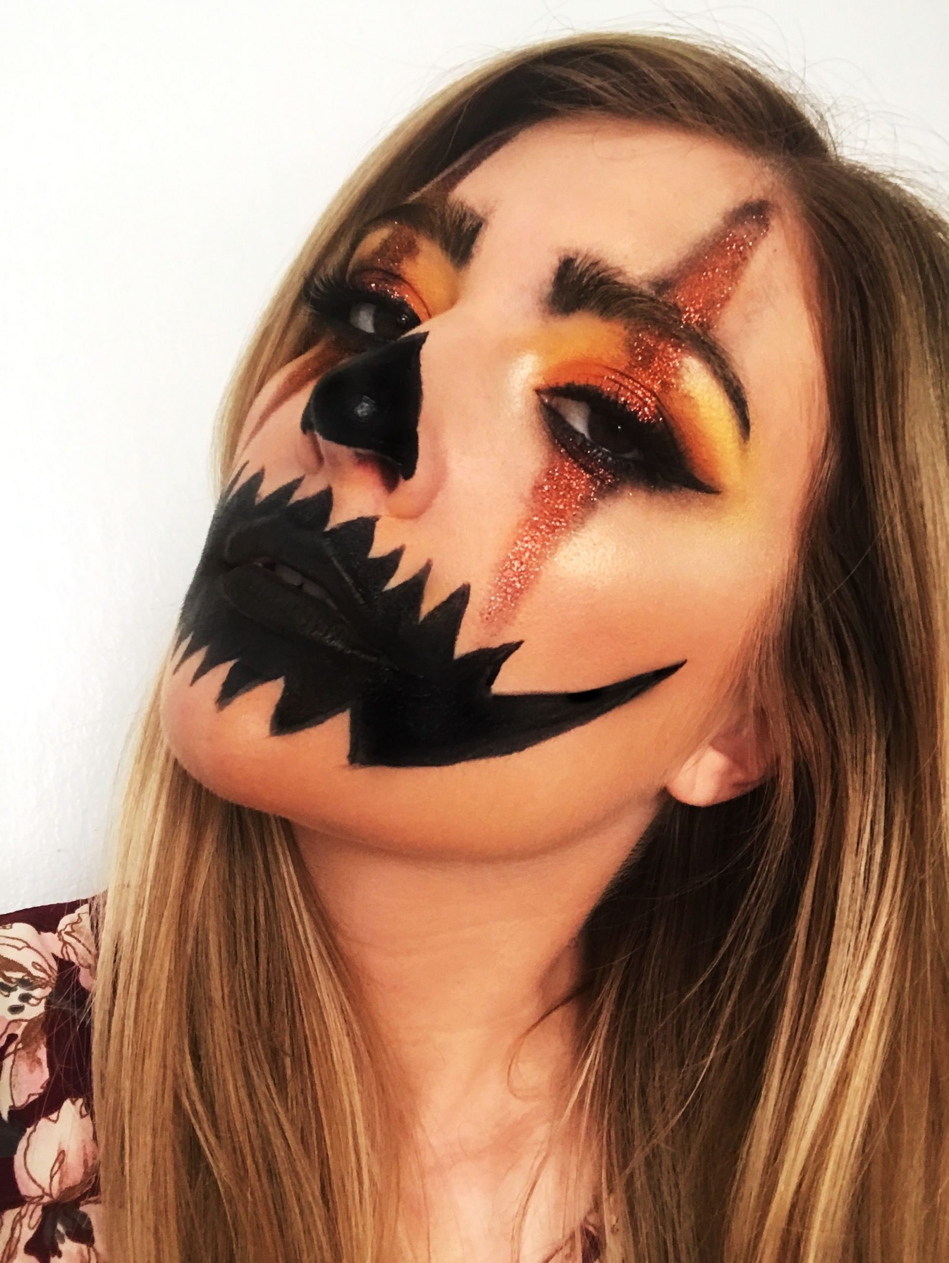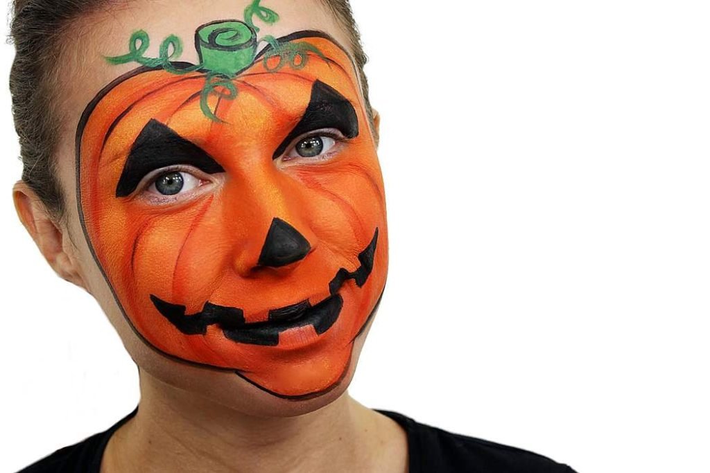![Макияж тыквы на Хэллоуин для ребенка]()