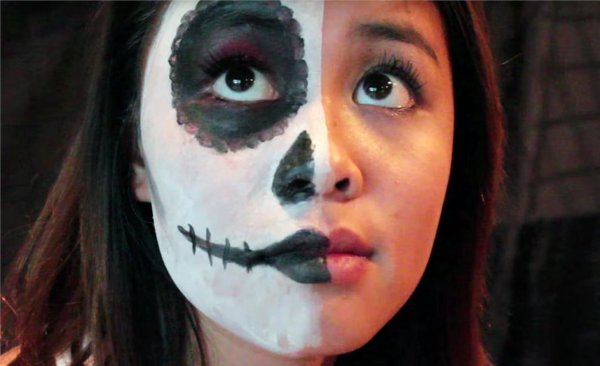 ![Грим на Хэллоуин для девочек и мальчиков]()