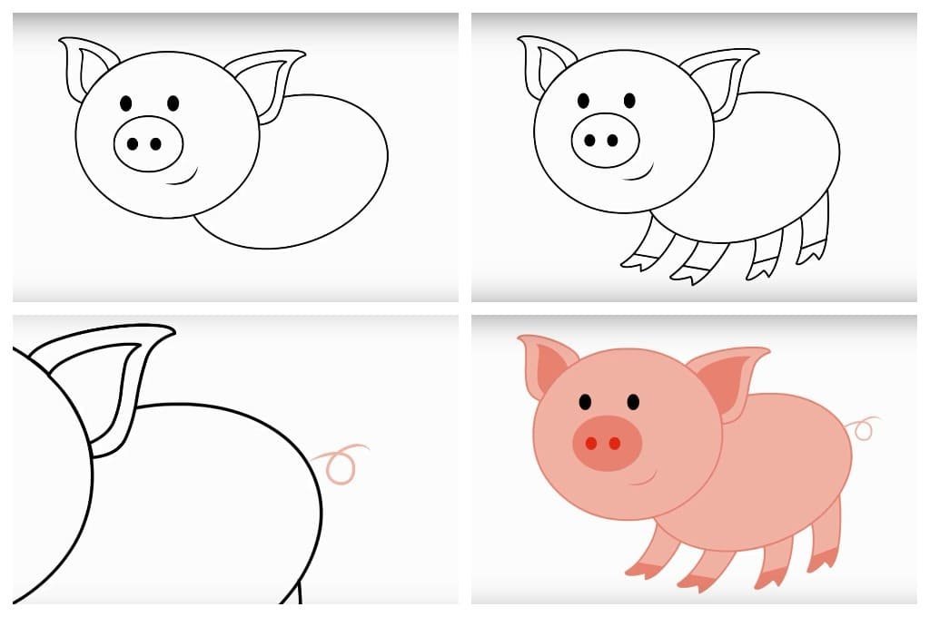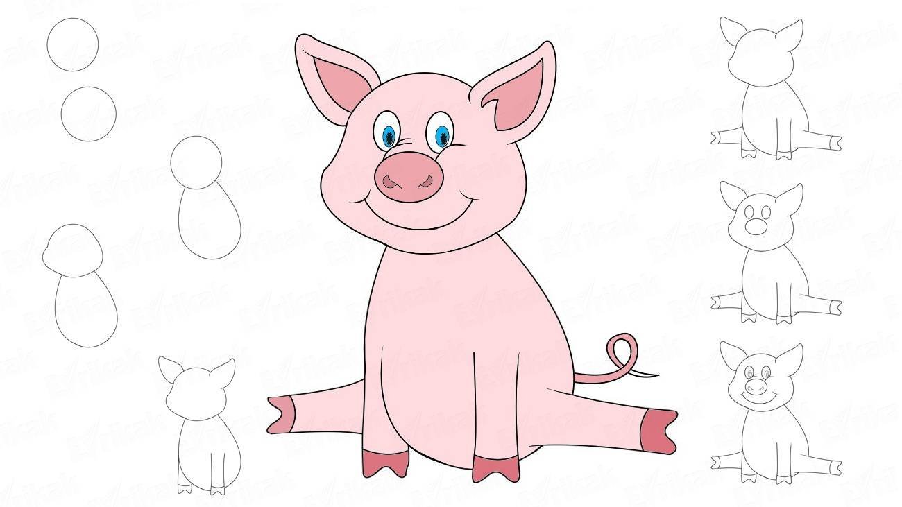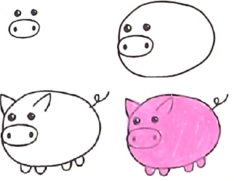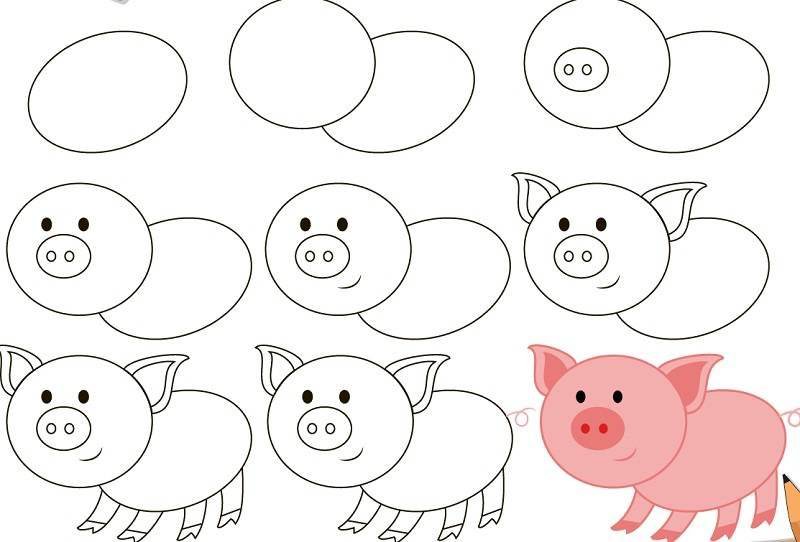 Поэтапное рисование поросёнка для детей