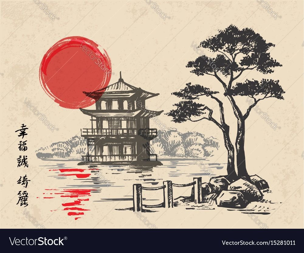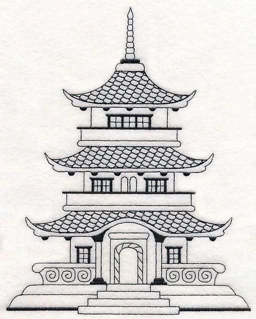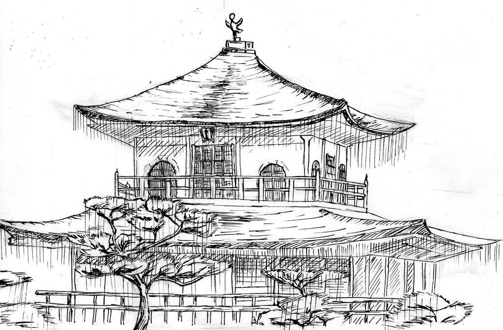 ![Храм Хигаси Хонгандзи Япония рисунок карандашом]()