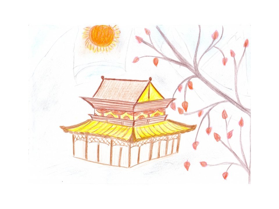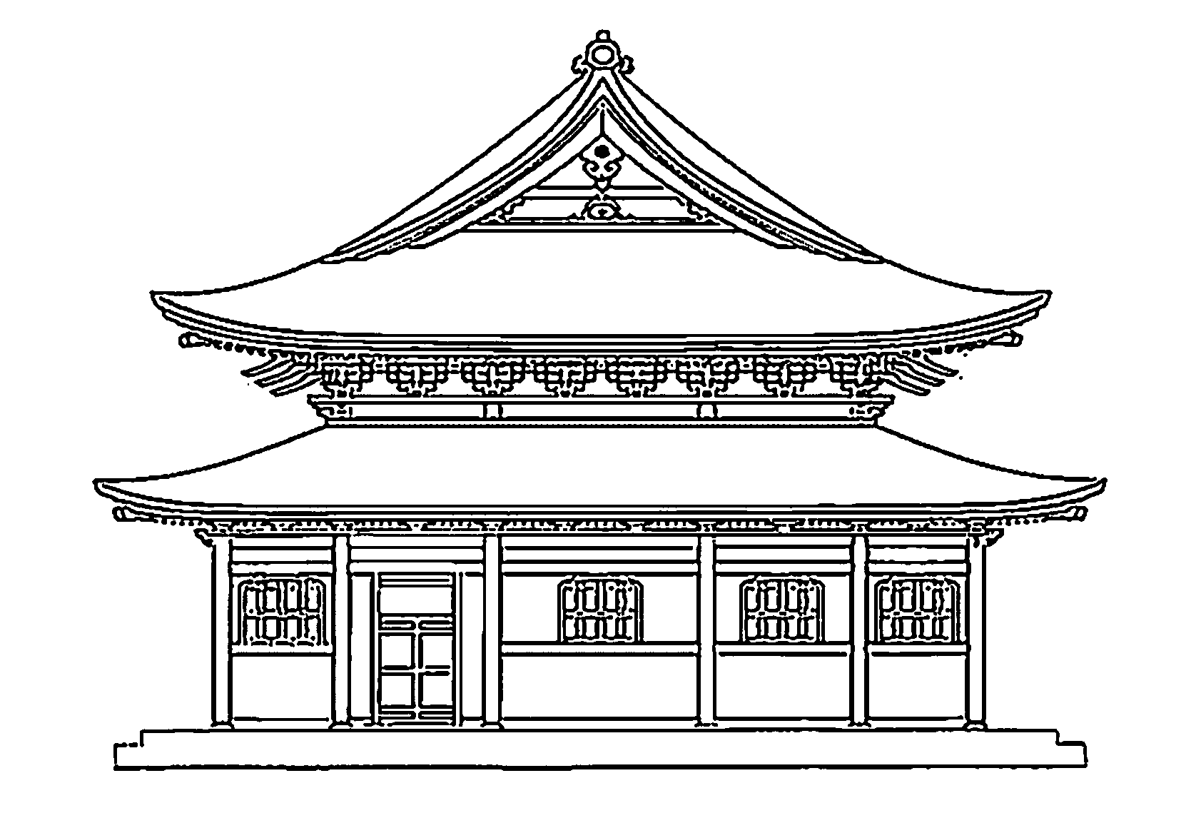 Храм Хигаси Хонгандзи Япония рисунок карандашом