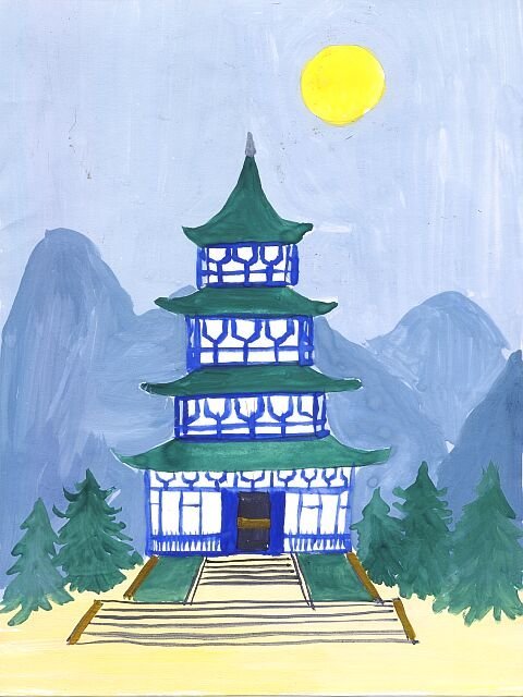 ![Храм Хигаси Хонгандзи Япония рисунок]()