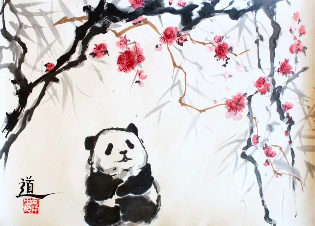 ![Японская живопись тушью в стиле суйбоку Рюкю Саито]()