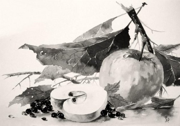 ![Гризайль живопись натюрморт акварелью]()