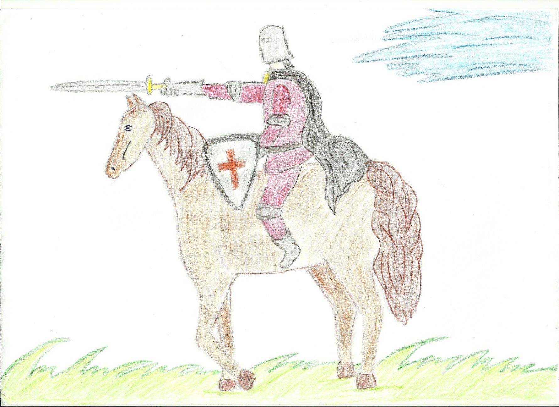![Рыцарь на коне карандашом]()