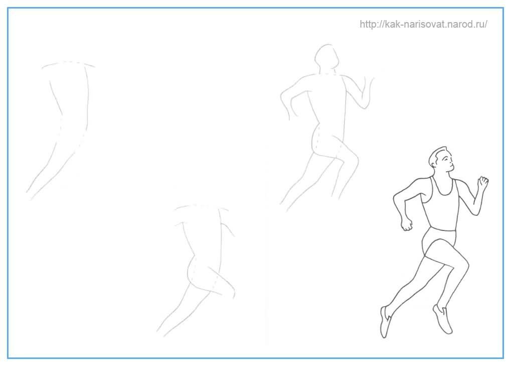 ![Поэтапный рисунок человека в движении]()