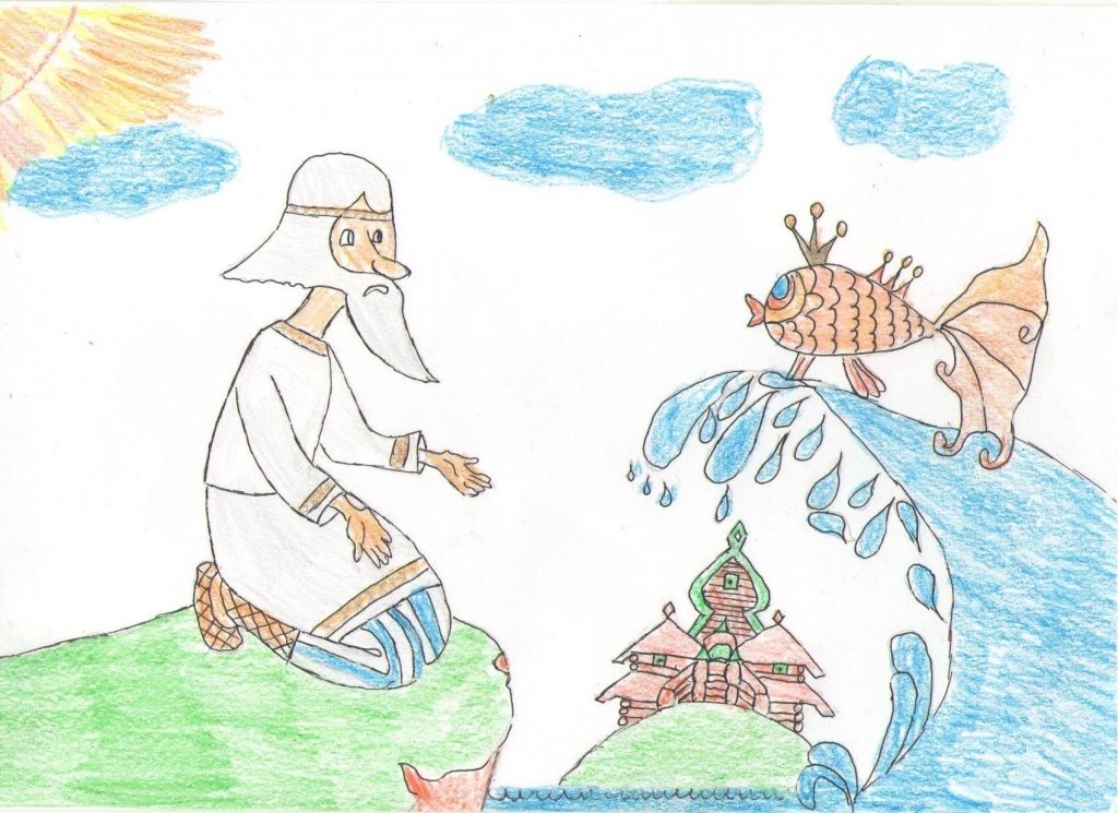 Рисунок к сказке Пушкина Золотая рыбка