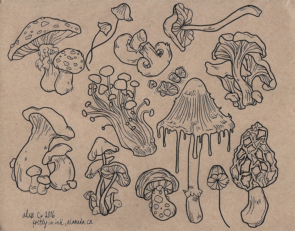 ![Нарисовать грибы карандашом]()