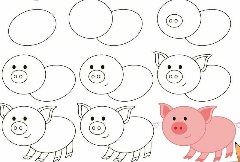 Поэтапное рисование свиньи