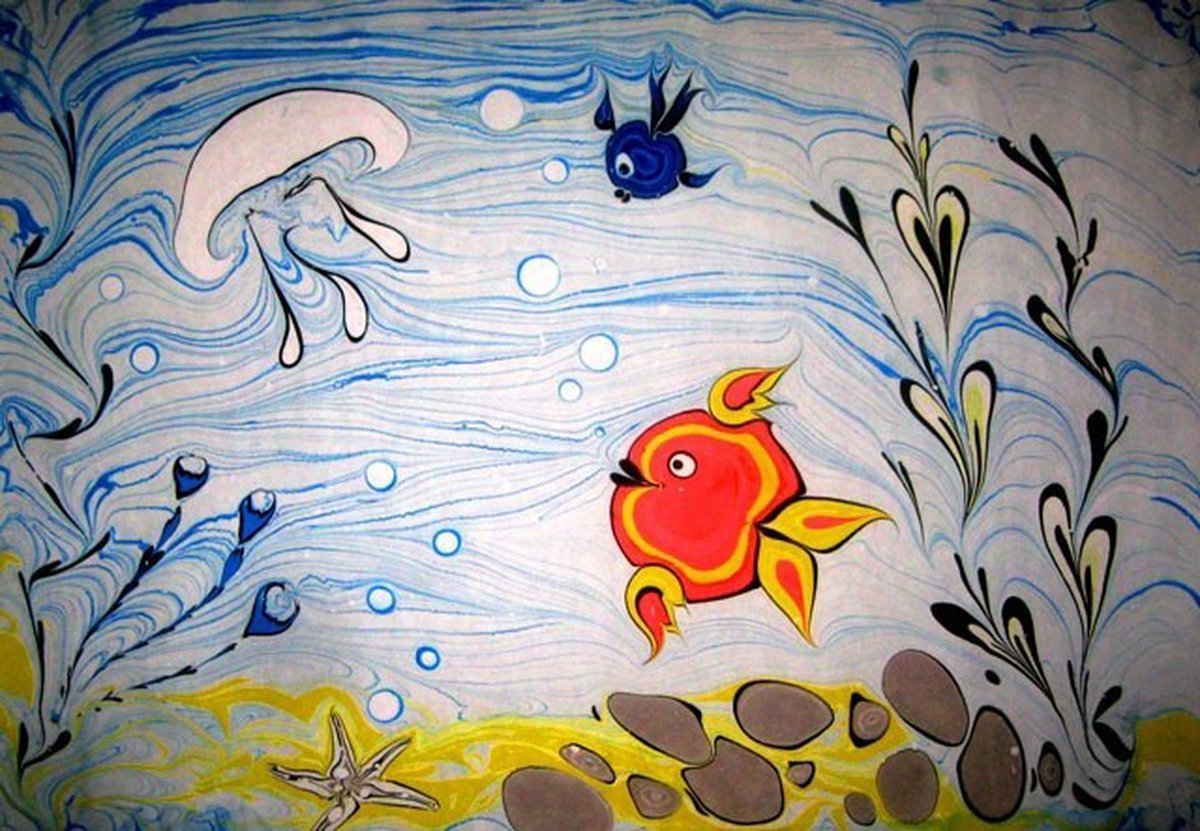 ![Нетрадиционная техника рисования эбру рисование на воде]()